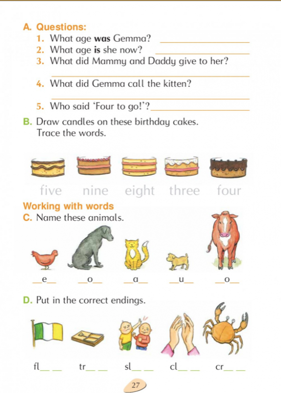 Read the short story ‘Gemma is seven’. There is also another worksheet to go with it. Write the answers to the questions on a page. Remember to write a full sentence for each answer. For example ‘What day is it?’ ‘Today it is Tuesday’.