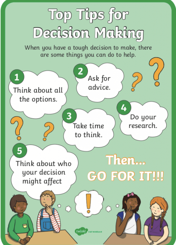 I have attached decision making challenge cards, read them carefully and think what choice or decision you would make. There is also a worksheet to discuss here.